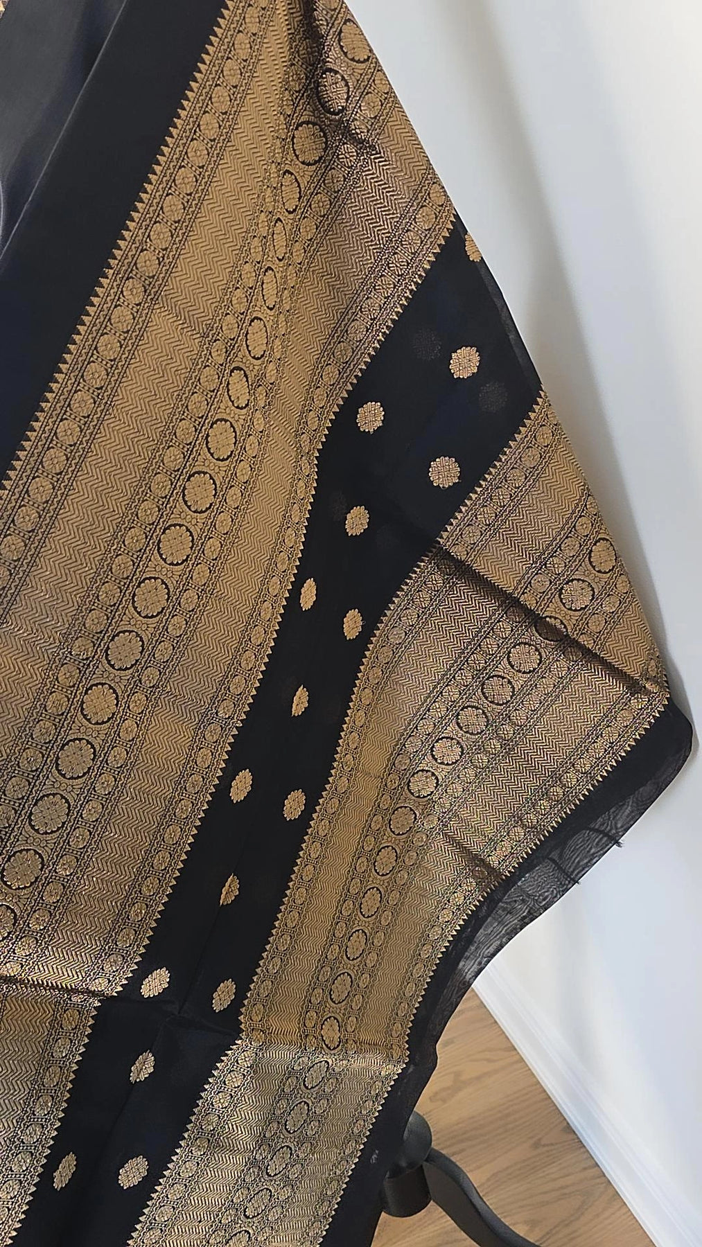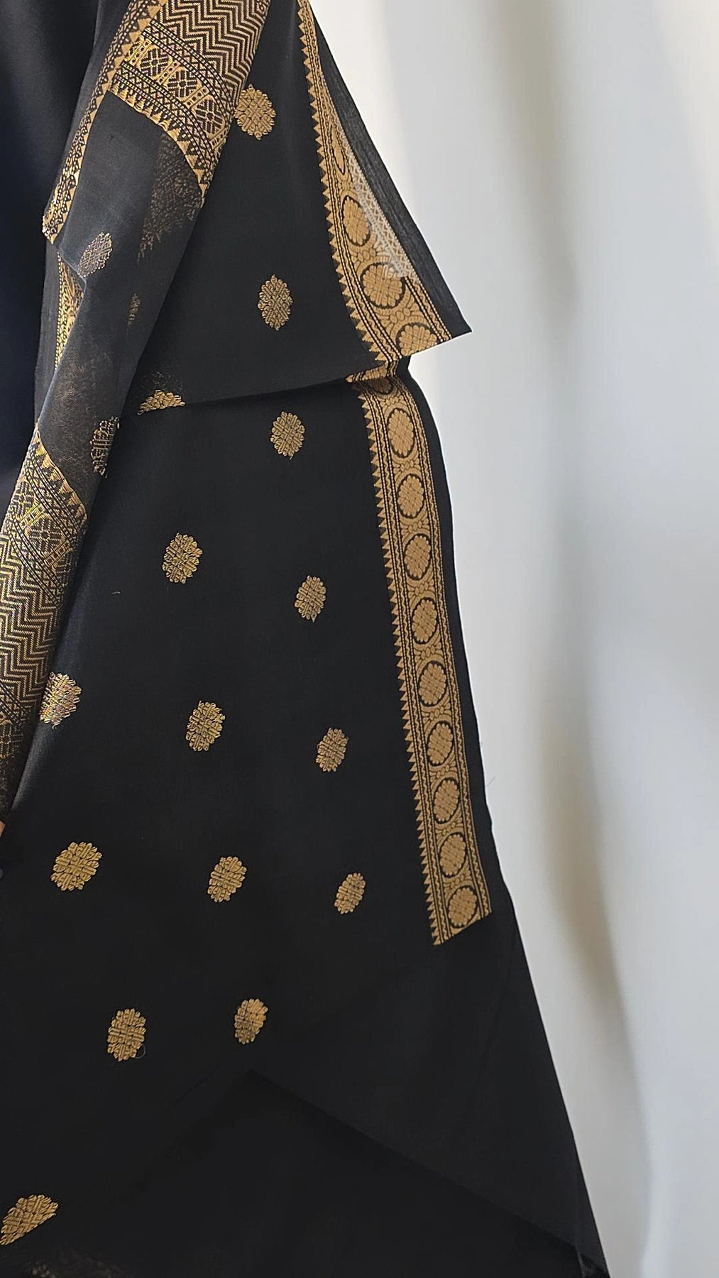 This premium cotton biscuit coloured saree features a thread Banaras border with lotus butta design. Crafted with high-quality materials, it offers both comfort and style. Elevate your wardrobe with this elegant saree, perfect for any occasion.