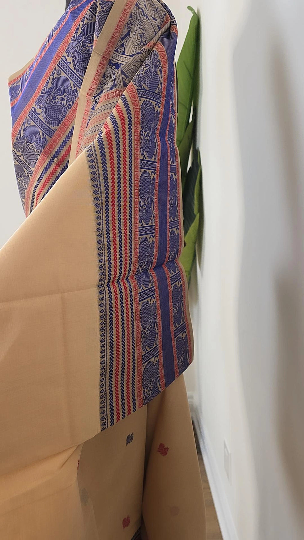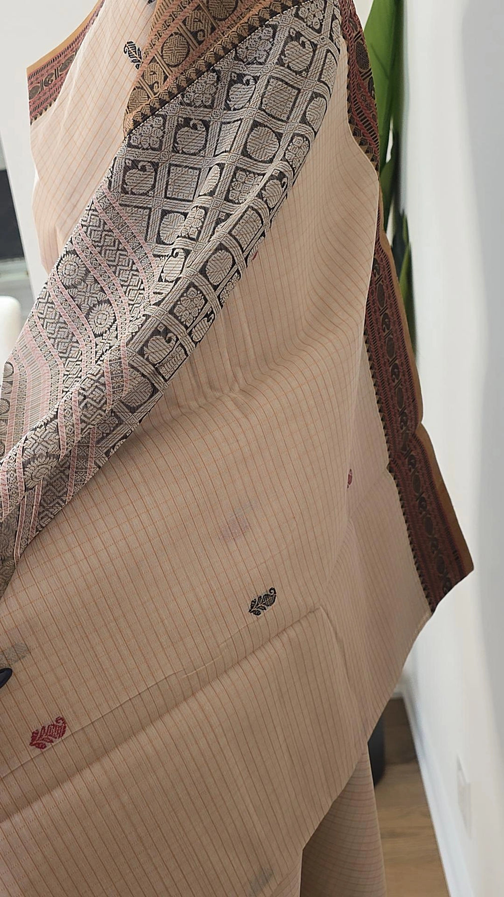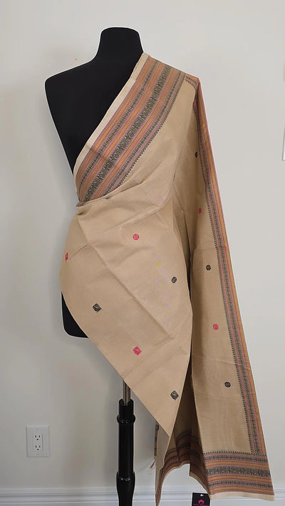 Elevate your fashion game with our Off-white Premium Cotton saree. Made with high-quality cotton, it's perfect for any occasion. The running blouse material adds versatility, allowing you to create different looks. Take a risk, stand out, and embrace your uniqueness with our saree!