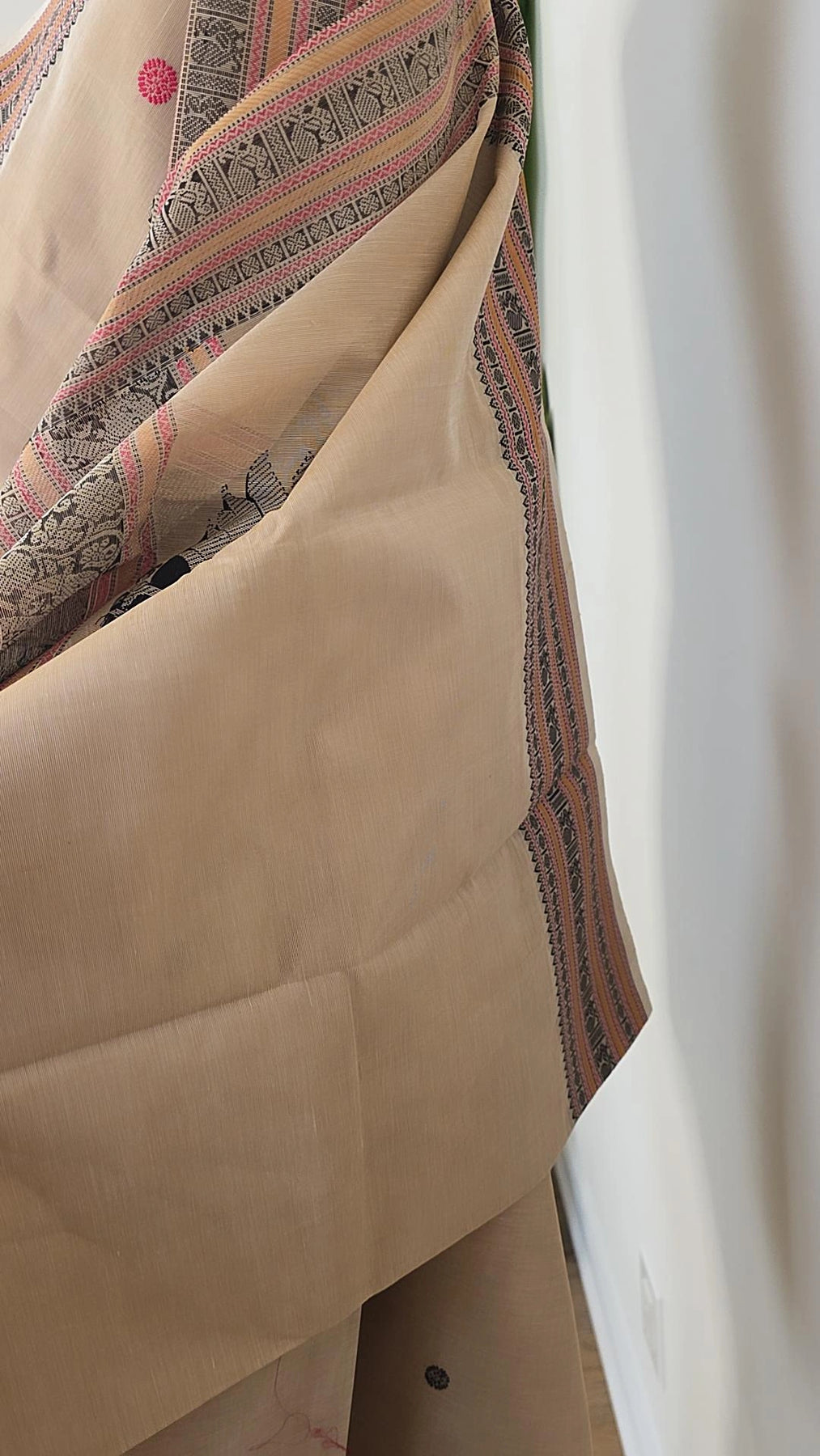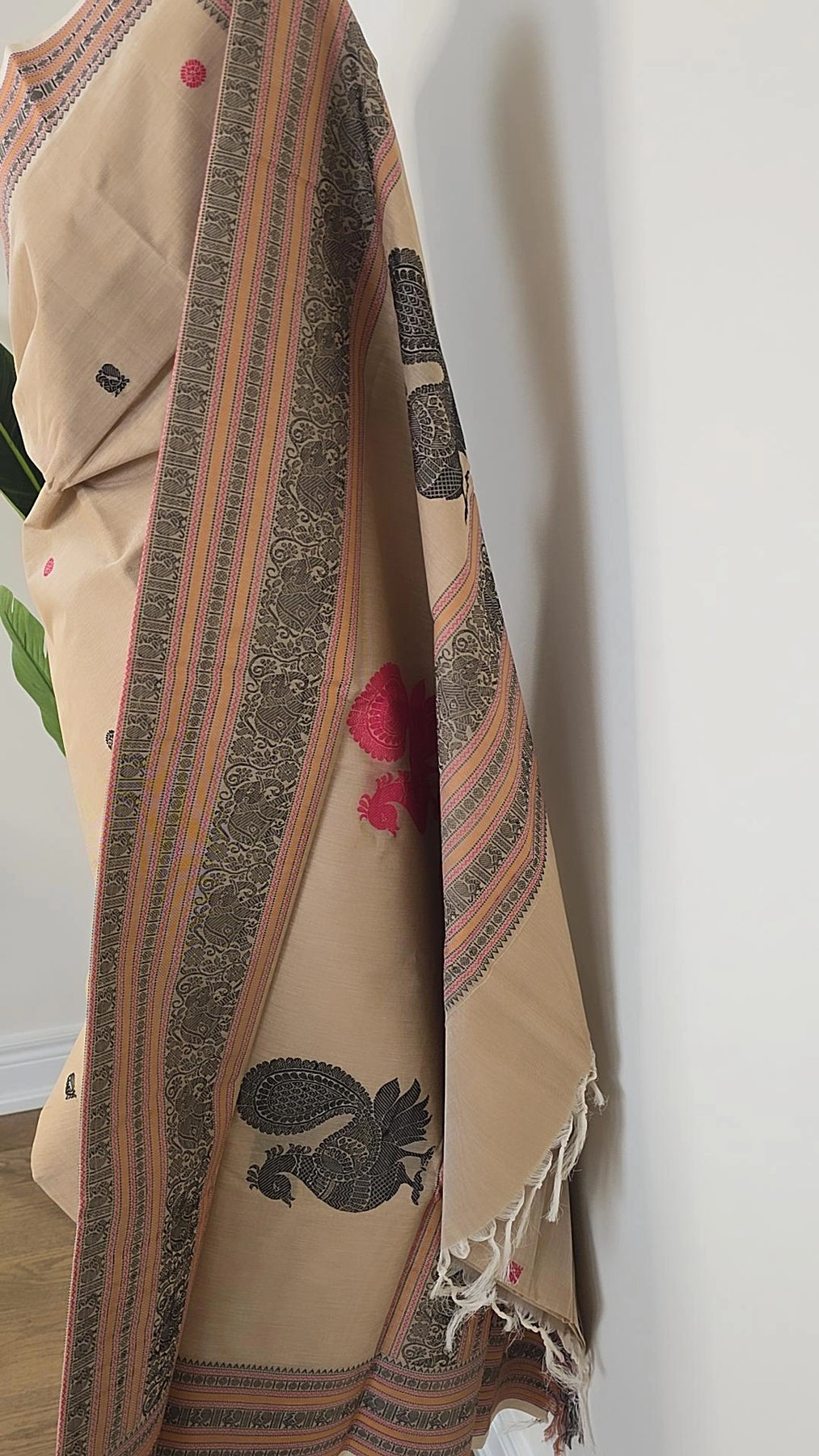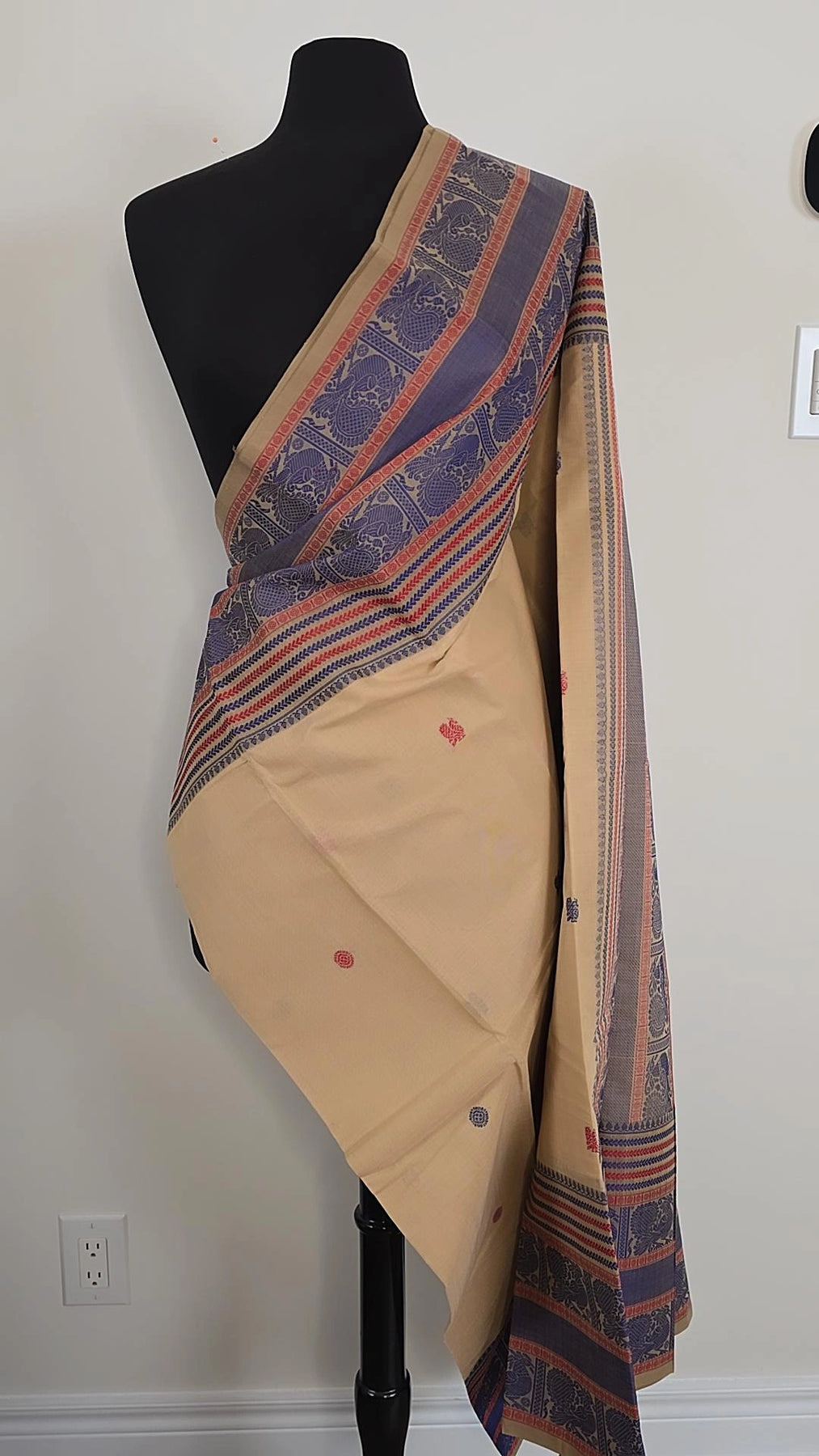 Elevate your fashion game with our Off-white Premium Cotton saree. Made with high-quality cotton, it's perfect for any occasion. The running blouse material adds versatility, allowing you to create different looks. Take a risk, stand out, and embrace your uniqueness with our saree!