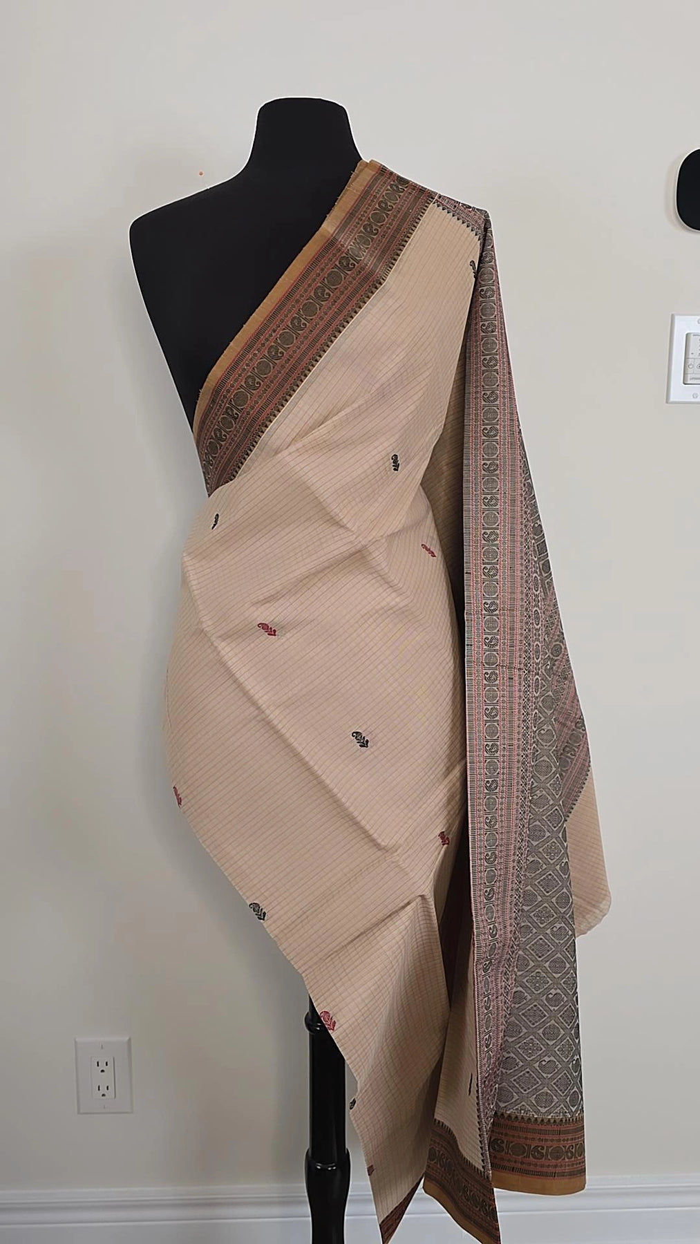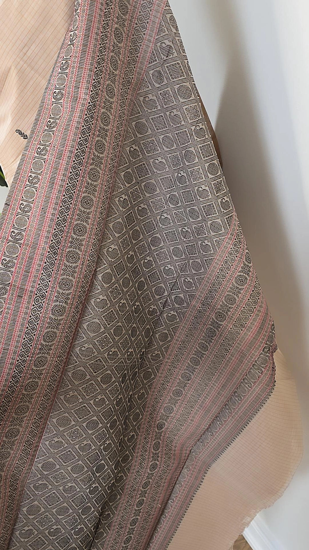 Experience the luxury and comfort of our Off-white Check Premium Cotton saree! Made with premium quality cotton, this saree is perfect for any occasion. Complete with a running blouse material, this saree offers convenience and style. Elevate your wardrobe with this must-have piece!