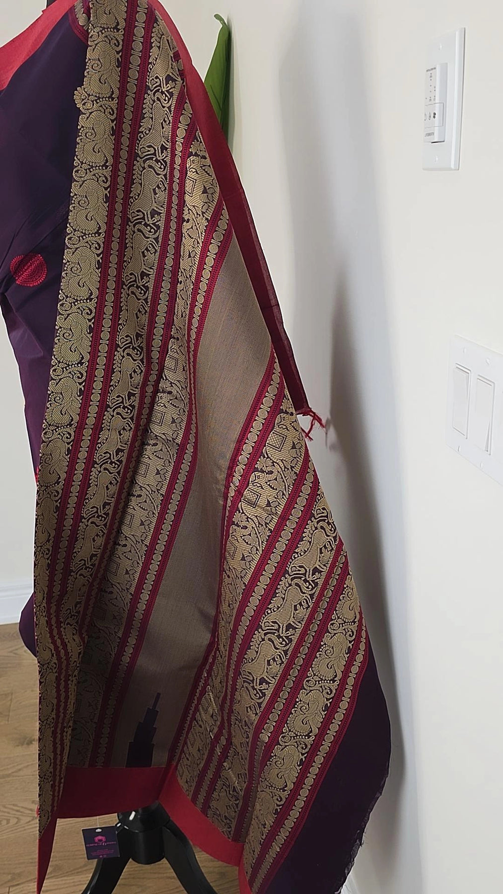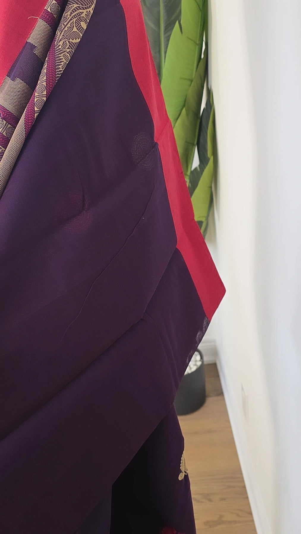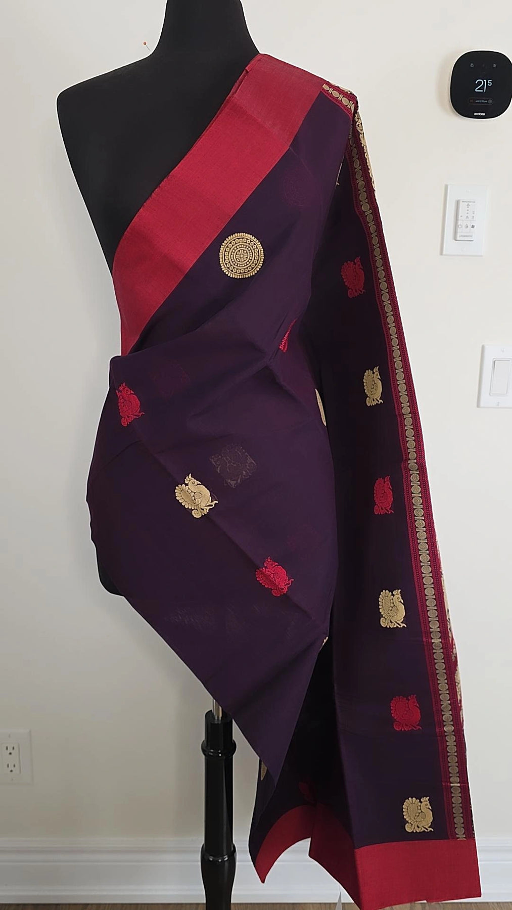 Maroon, green with purple premium handloom cotton, plain running blouse material included